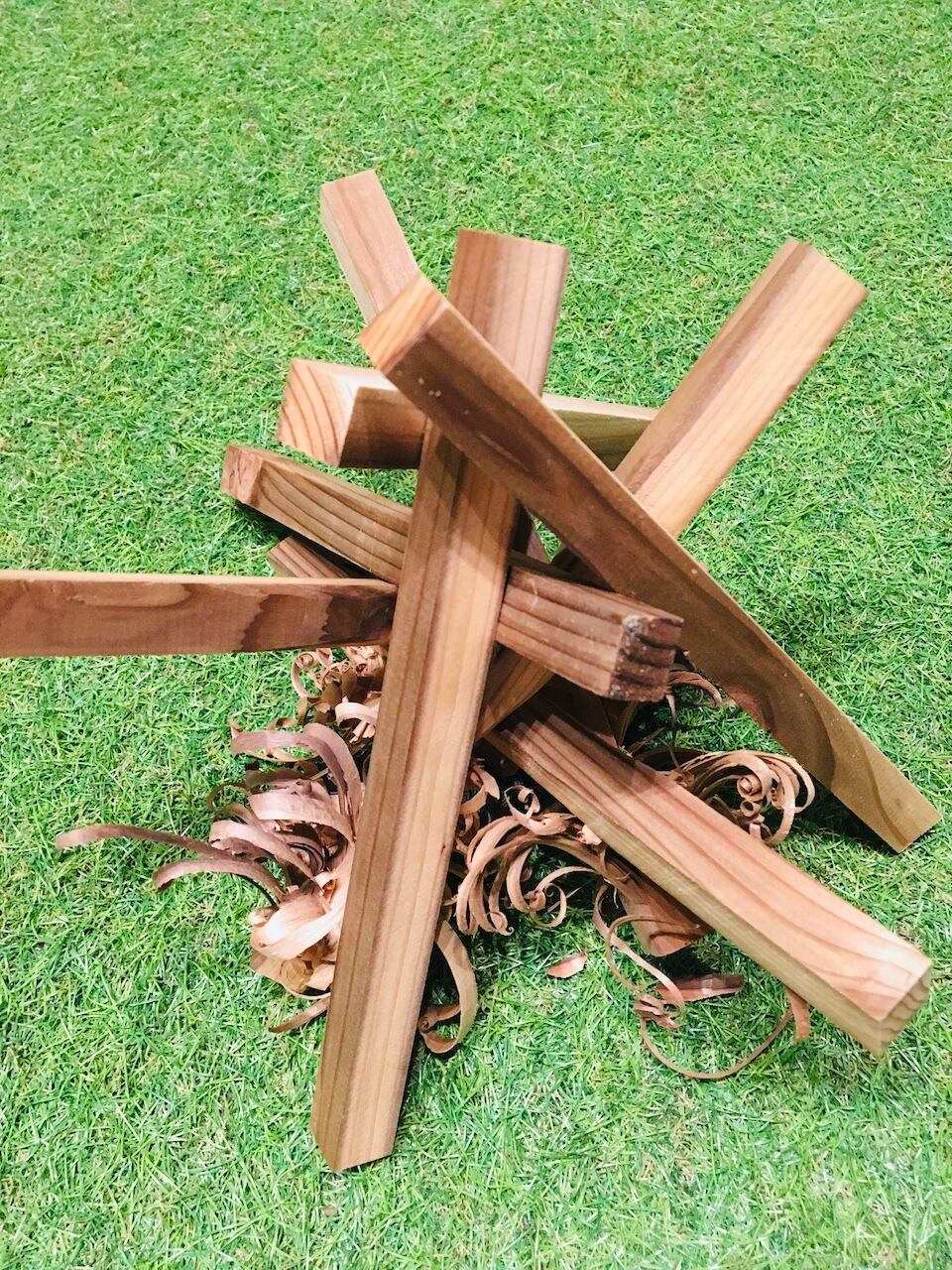 焚き付けに最適なスギ、ヒノキ等の針葉樹を使用しています。 建築端材を利用したリサイクルエコ商品です。